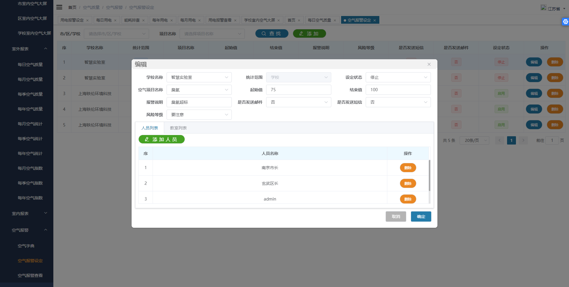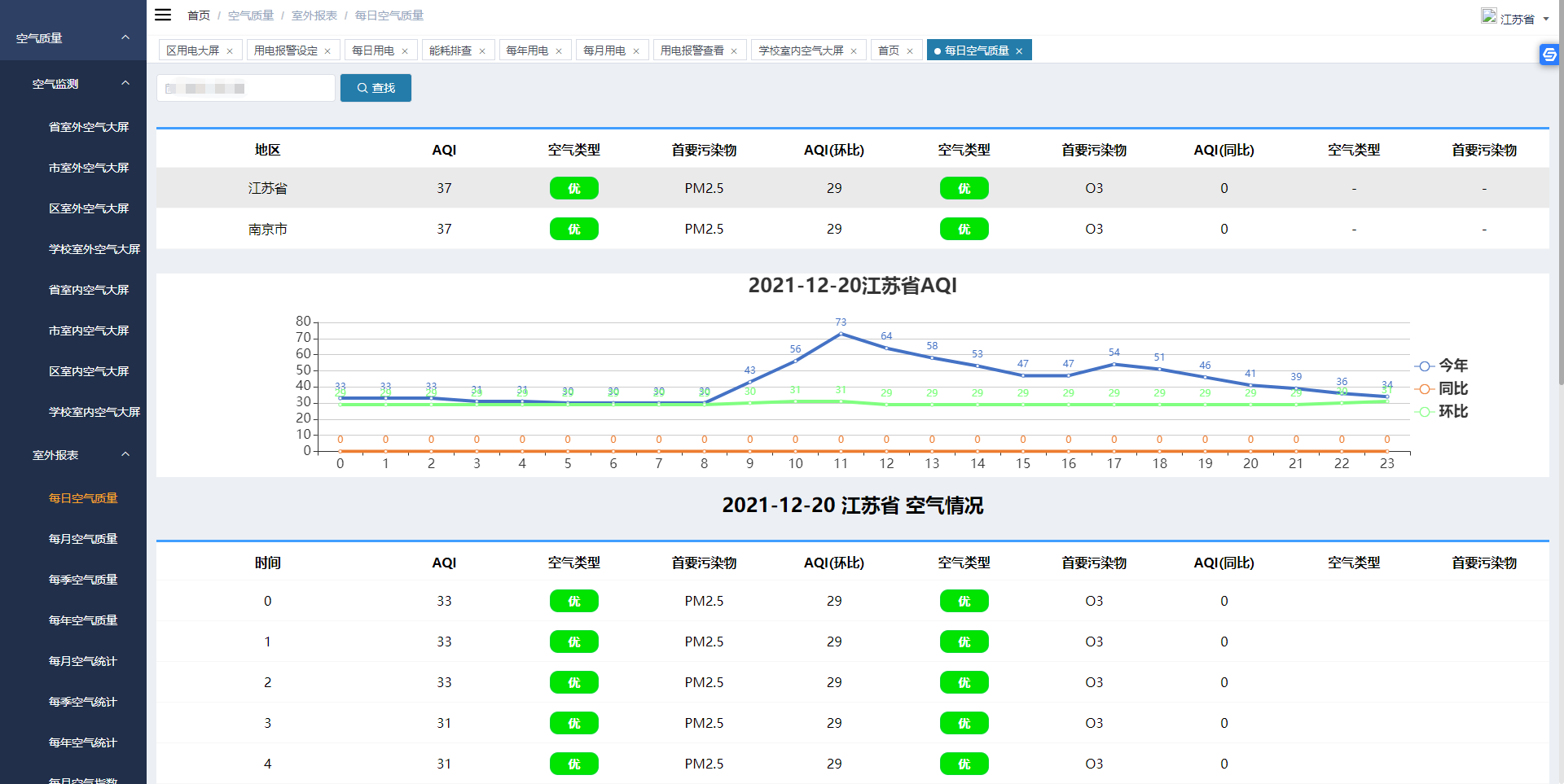 实现对室内外温湿度、甲醛、PM2.5、TVOC、CO2、SO2、NO2、CO、O3、粉尘、噪音等空气质量参数24小时 在线实时监控,建成覆盖重点区域的空气质量感知网络